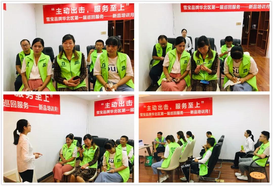 2019年9月8日、9月10日,“主動(dòng)出擊 服務(wù)至上”雪寶品牌華北區(qū)第一屆巡回服務(wù)——新品培訓(xùn)月活動(dòng)走進(jìn)江蘇淮安和江蘇宿遷,雪寶國(guó)際集團(tuán)華北營(yíng)銷中心聯(lián)合雪寶國(guó)際集團(tuán)培訓(xùn)策劃部攜手當(dāng)?shù)匮⿲毱放茖Yu店開展新品培訓(xùn),幫助經(jīng)銷商打造高效精英團(tuán)隊(duì)以及高效管理店...