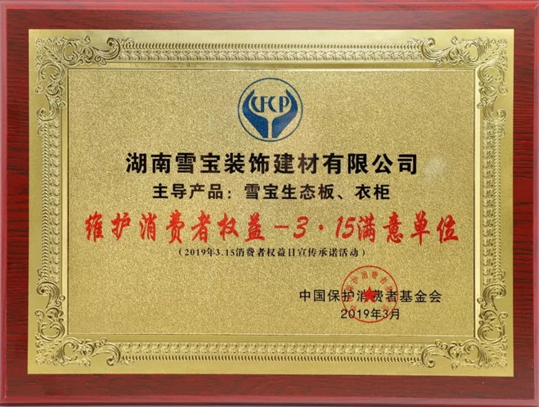 - 生態(tài)板十大名牌雪寶榮獲2019維護(hù)消費(fèi)者權(quán)益-3.15滿意品牌稱號