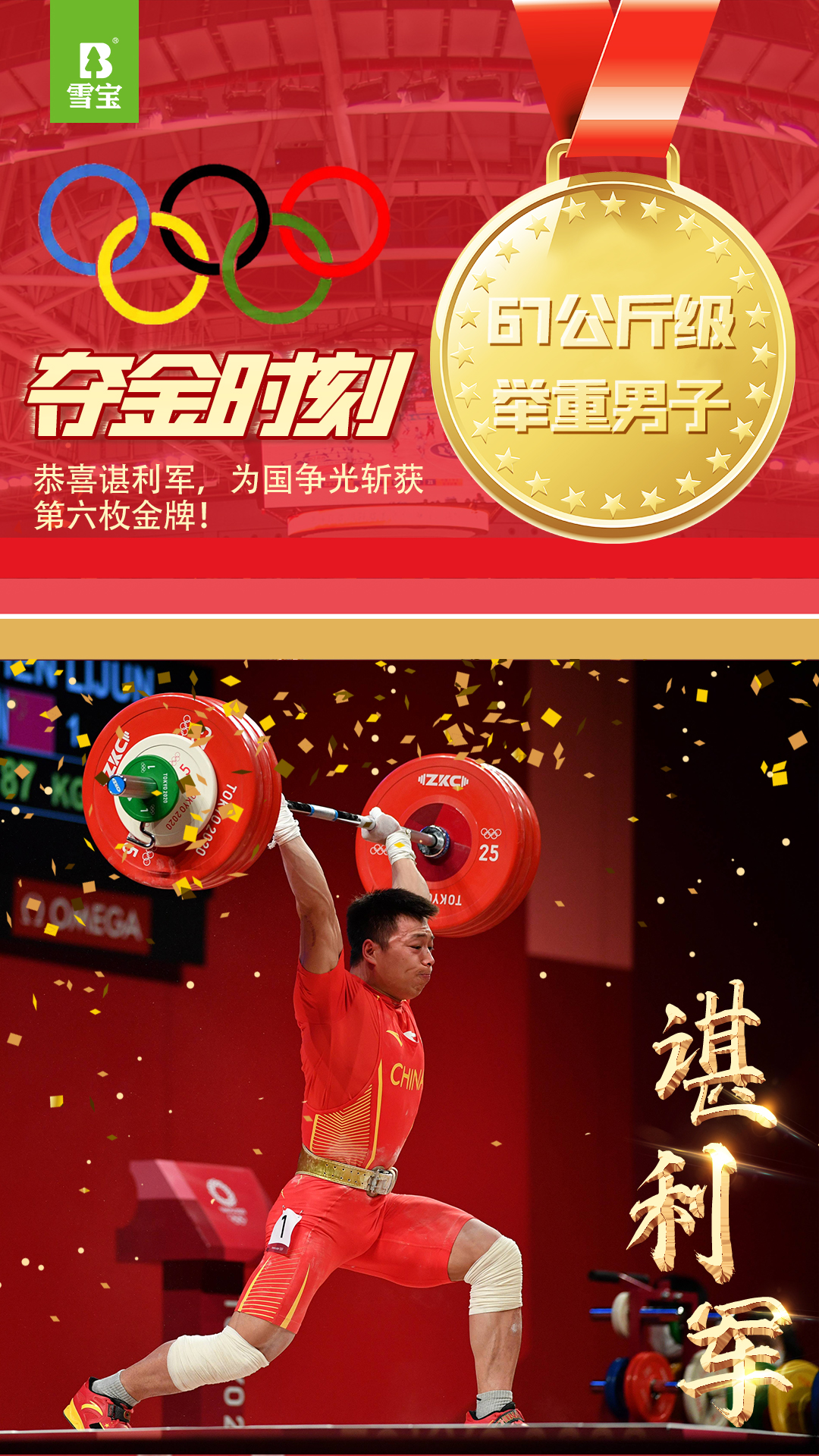 - 雪寶板材祝賀諶利軍在2020東京奧運會67公斤級男子舉重獲得冠軍!