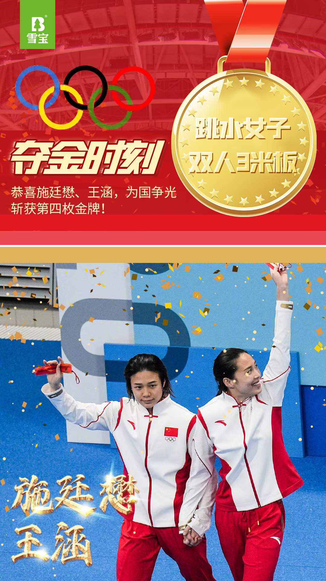 - 雪寶板材祝賀施延懋和王涵獲得2020奧運會雙人女子3米板冠軍