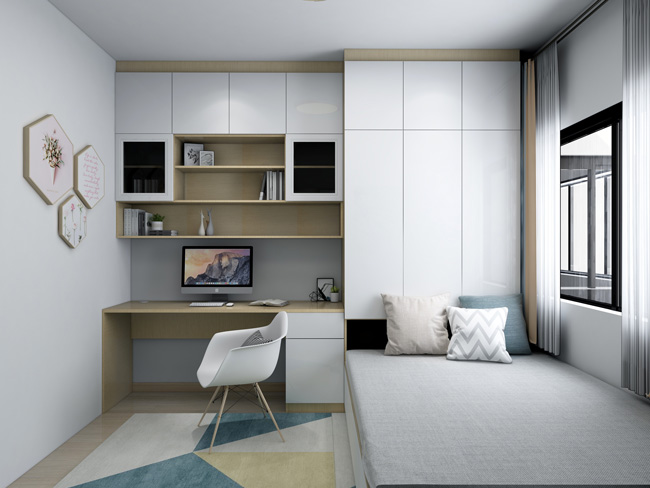 榻榻米是小空間的至愛,而榻榻米書桌一體化的整體定制,結(jié)合了休息、學(xué)習(xí)、收納功能于一體,靈活多變的設(shè)計(jì),高效利用空間,滿足收納與多功能空間的需求,實(shí)現(xiàn)一屋多用的功能,而且絢爛多彩的裝飾效果,讓小房間顯得活潑生動(dòng),絕佳的榻榻米+書桌組合定制,板...
