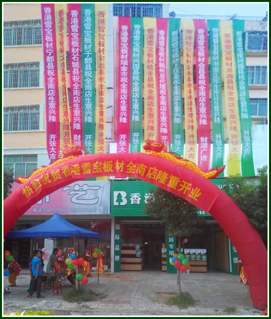 2014年9月5日雪寶板材(江西全南店)盛大開業(yè),開業(yè)期間主辦方舉行了開業(yè)活動,現(xiàn)場天氣晴好,氣氛熱烈。