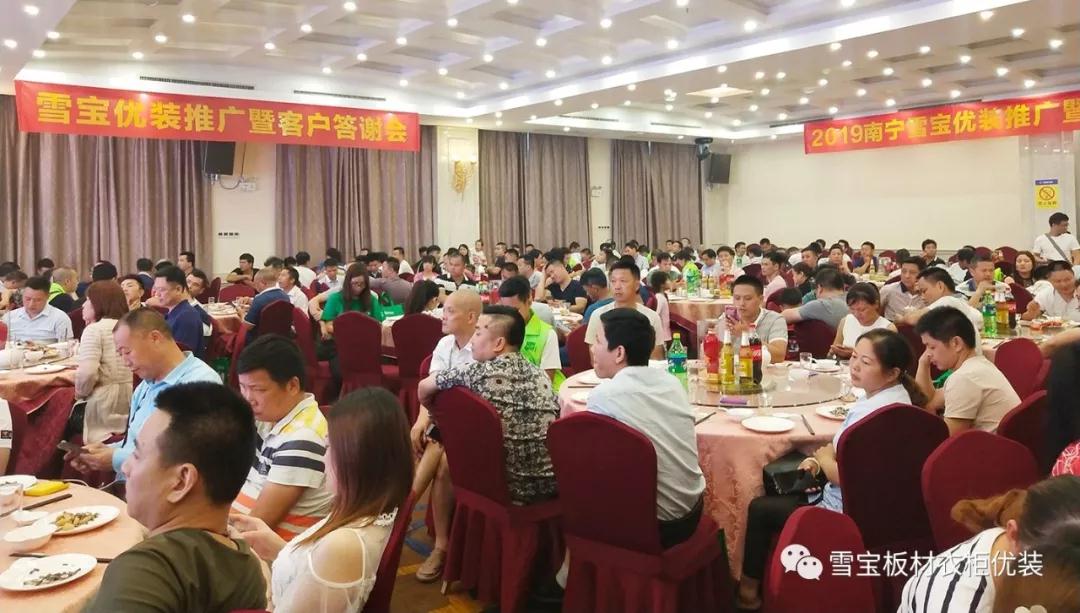 2019年5月22日,雪寶優(yōu)裝廣西運營中心2019優(yōu)裝推廣暨客戶答謝會盛大舉行,來自南寧地區(qū)合作裝飾公司以及木工師傅等逾260位來賓朋友蒞臨活動現(xiàn)場,活動中設立簽到禮、有獎問答、幸運抽獎等環(huán)節(jié),整場活動氛圍其樂融融,讓每一位來賓朋友深深感受到雪寶優(yōu)裝廣西運營中心團隊的熱情和十足誠意!