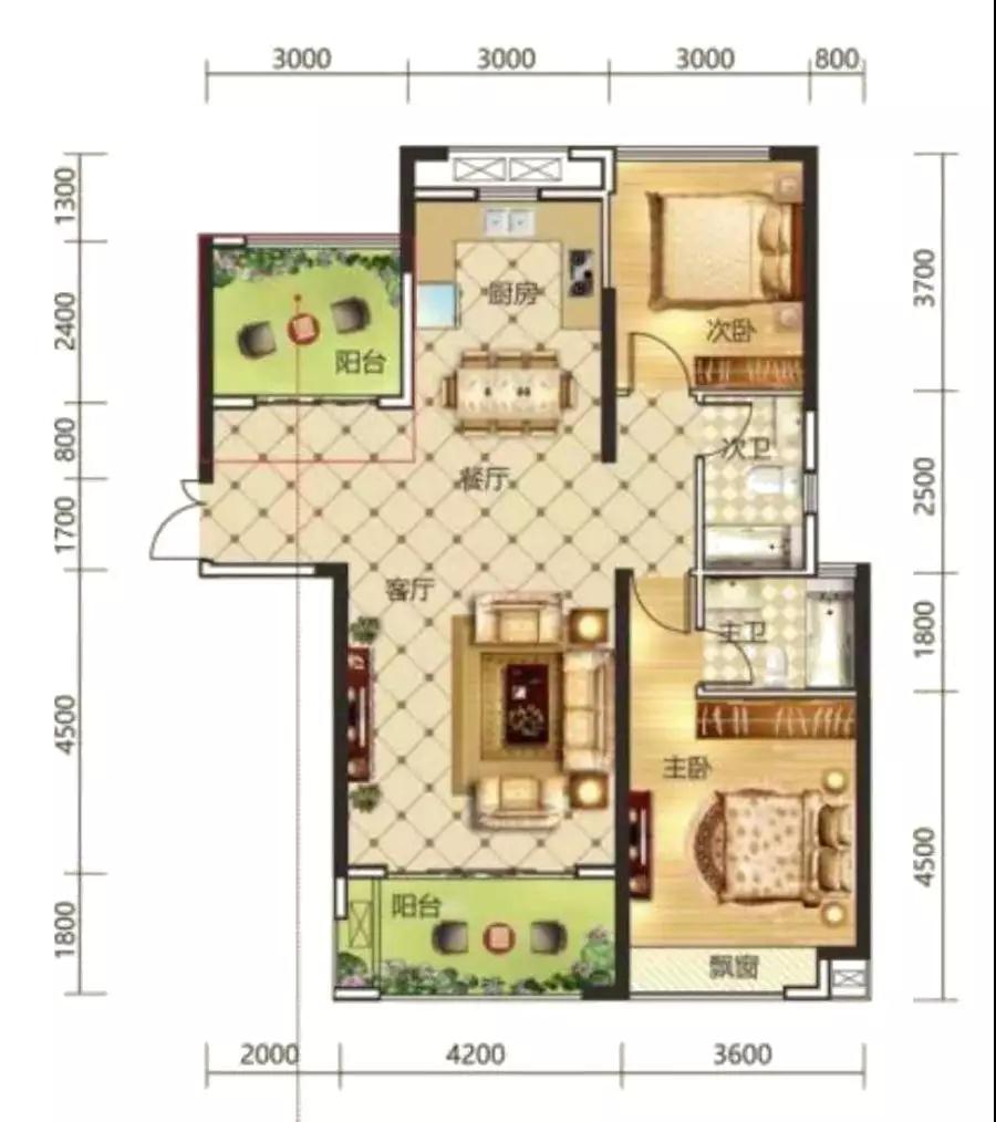 功 能 性:廚房面積小且不大實(shí)用的開(kāi)放式設(shè)計(jì);餐廳面積非常小,主臥同樣面積有限;次臥進(jìn)深較長(zhǎng)但寬度不夠;