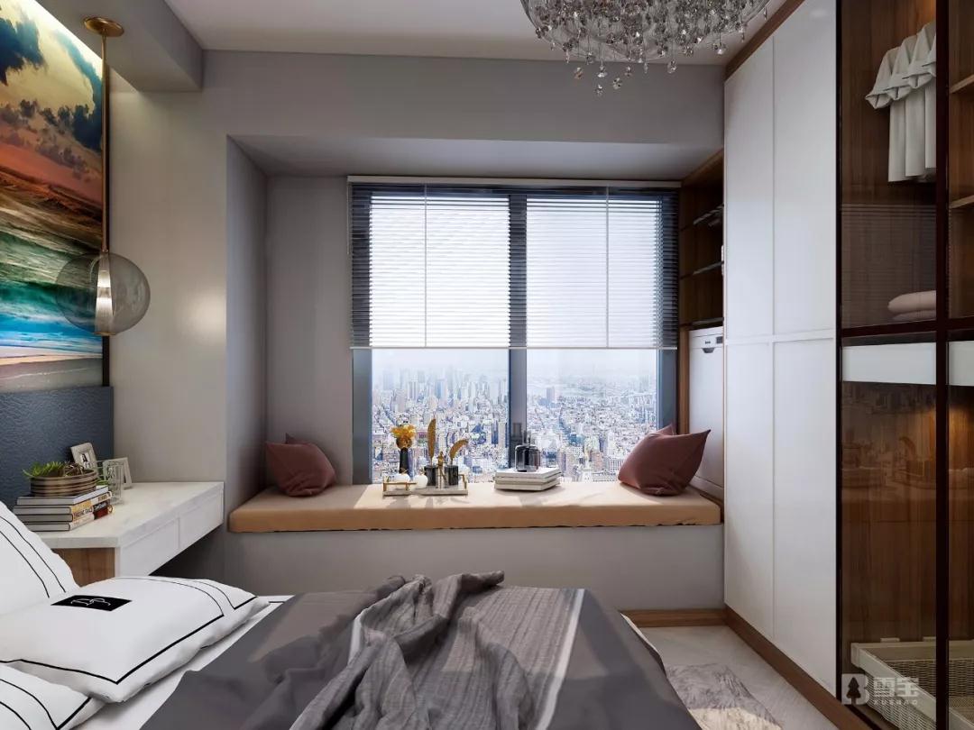 主臥設(shè)計(jì)無(wú)疑也是盡可能擴(kuò)容收納和加強(qiáng)功能性,同時(shí)兼顧了女主人的喜好,大衣柜、床頭柜、簡(jiǎn)易書(shū)桌柜、飄窗柜在整個(gè)空間各顯其能。衛(wèi)生間采用智控鋼化玻璃打造隔斷,不用之際,主臥空間視覺(jué)開(kāi)闊明朗,使用之時(shí),智控裝置為生活隱私保駕護(hù)航,實(shí)現(xiàn)虛實(shí)自由掌控。