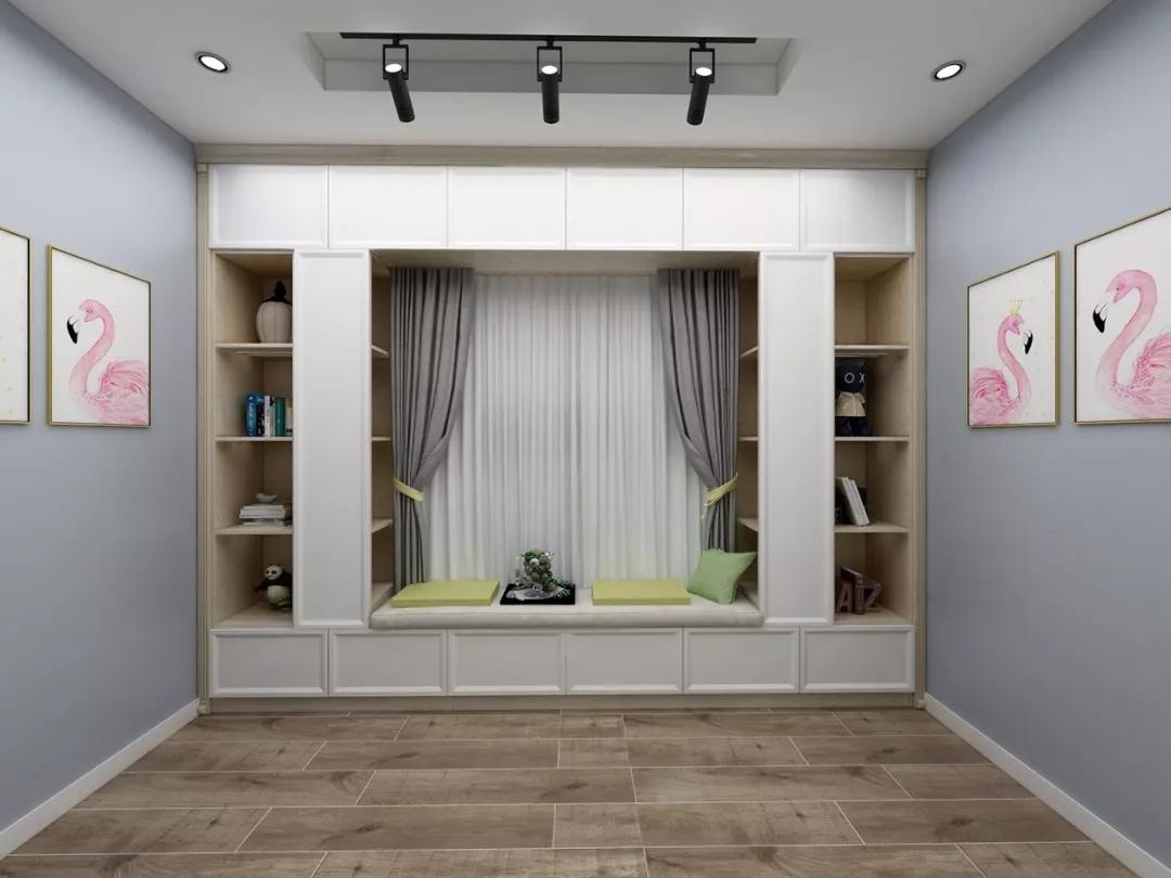 將榻榻米底部整體抬高,加上長擱板做書桌,層次感十足的小空間也可以成為孩子們學(xué)習(xí)娛樂的區(qū)域。