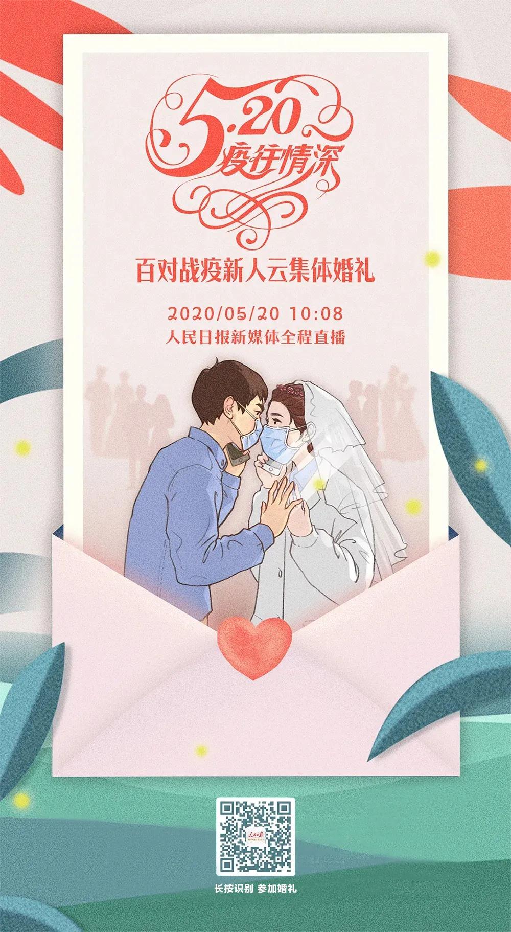 “疫”往情深,共同見證2020年05月20日10:08,在這個“三倍愛你”的特殊日子,人民日報新媒體攜豪華嘉賓陣容為100對戰(zhàn)疫英雄們舉辦一場最甜蜜的云婚禮,由中國工程院院士/共和國勛章獲得者黃旭華、中國工程院院士李蘭娟,共同為新人證婚,李宇春傾情演繹音樂短片,李云迪將彈奏婚禮進(jìn)行曲,各界名人組成云伴郎伴娘團(tuán)為新人送上祝福。