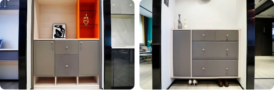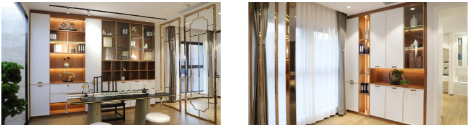 現(xiàn)代簡(jiǎn)約風(fēng)格系列之榻榻米、入戶柜、鞋柜等呈現(xiàn),無論是板材花色搭配上還是點(diǎn)綴色的運(yùn)用上都相得益彰,給人親切的家居溫馨感的同時(shí)又極具質(zhì)感,完美的將品牌“健康·時(shí)尚·品質(zhì)·品味”的產(chǎn)品理念極致體現(xiàn)。