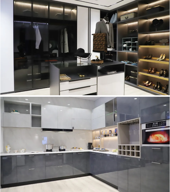 雪寶優(yōu)裝定制館中現(xiàn)代簡(jiǎn)約輕奢系列之客廳、衣帽間、廚房等空間的淋漓展現(xiàn),既符合了當(dāng)下潮流前沿的家裝趨勢(shì),也迎合了消費(fèi)市場(chǎng)的個(gè)性訴求,其中柜體功能件的廣泛運(yùn)用于實(shí)際生活中,更加凸顯“以人為本”的設(shè)計(jì)中心思想,以達(dá)到方便、省事、省力、舒適的目的;