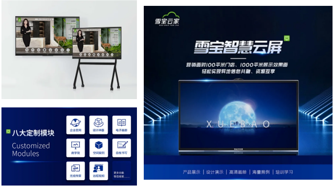 雪寶智慧云屏是一款集企業(yè)展示、設(shè)計(jì)下單、內(nèi)訓(xùn)學(xué)習(xí)、遠(yuǎn)程互通等多功能于一體的高清智能多媒體一體機(jī),有助于門(mén)店多維智能展示,打通總部與終端門(mén)店的點(diǎn)對(duì)點(diǎn)溝通,提升門(mén)店經(jīng)營(yíng)效率。