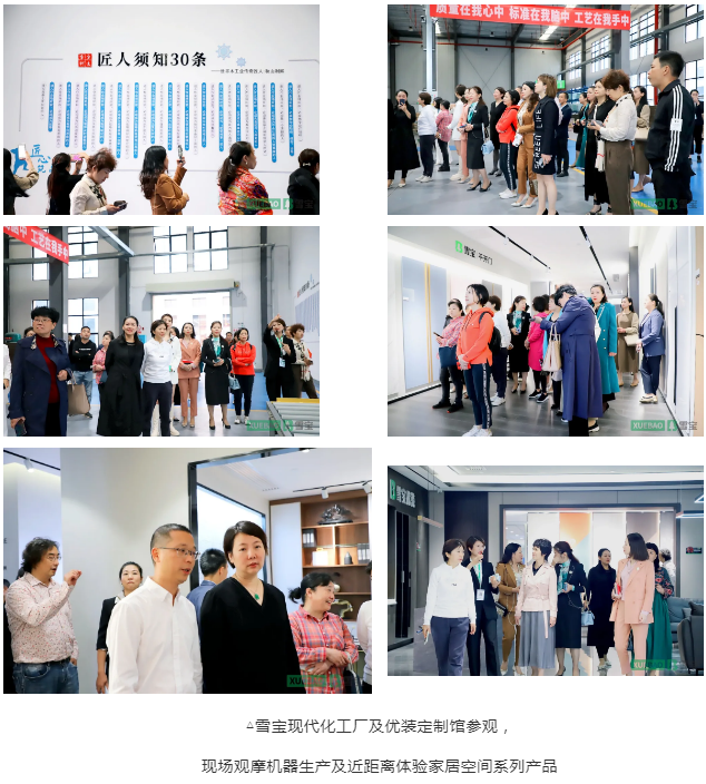 午餐過后,華商校友會及株洲市女企業(yè)家聯(lián)合會的精英大咖在集團董事長李振先生引領下,先后參觀大樓文化走廊、定制工廠、優(yōu)裝定制館、黨群服務中心,領略雪寶企業(yè)發(fā)展歷程的閃耀風采以及近距離體驗現(xiàn)代家居產(chǎn)品的科技魅力。