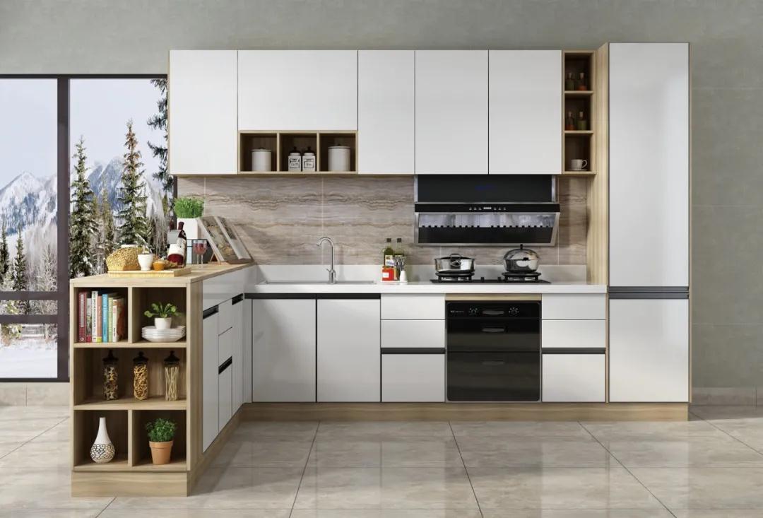 L型不僅合理設(shè)計(jì)“洗切炒”三大功能區(qū),還能讓廚房動(dòng)線更順暢。能將轉(zhuǎn)角柜的雞肋空間充分利用起來,在轉(zhuǎn)角柜處設(shè)計(jì)開放式擱架、轉(zhuǎn)角拉籃等,拿取各類廚房用品超方便。