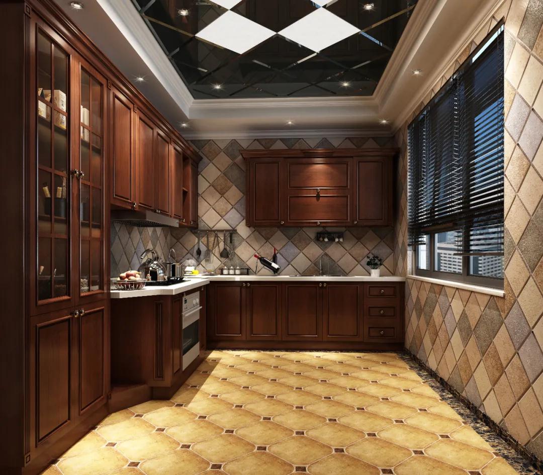 “U型”廚房的基本功能較為好用,操作流程合理,可以容納多人操作。U型廚房布局設(shè)計(jì)的櫥柜配備齊全,能充分利用空間,擴(kuò)大操作面積。