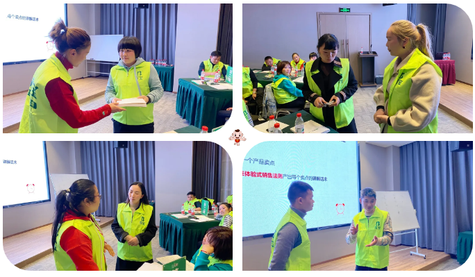 在基礎知識的鋪墊后,大家在講師的引領下展開角色模擬實踐演練。從如何向消費者講解產(chǎn)品賣點,到如何順利留住客戶促成訂單等一系列的營銷實戰(zhàn)訓練,調動了現(xiàn)場學員的求知欲望,眾人都積極主動參加現(xiàn)場互動。