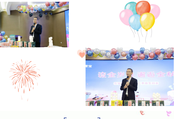 生日會(huì)上,集團(tuán)董事長(zhǎng)李振先生出席并致詞,衷心為壽星們送上最誠(chéng)摯的生日祝福,感謝大家在各自崗位上的辛勤付出,希望大家繼續(xù)與公司同心同行,不斷超越,勇往直前,在堅(jiān)持不懈的奮斗中鐫刻美好時(shí)光,收獲幸福。