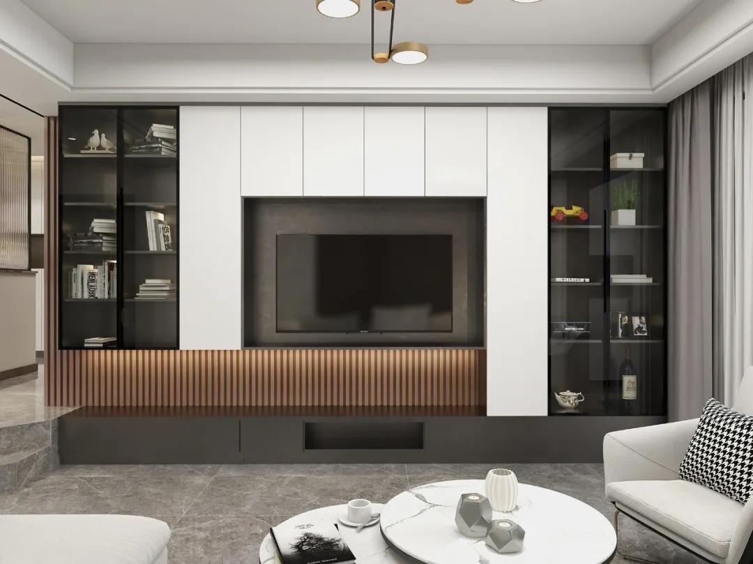 電視柜是客廳的視覺中心,在客廳只有沙發(fā)茶幾電視柜的布局情況下,電視柜就承擔(dān)了客廳的主要收納需求,超高門電視柜既能裝又大氣,滿足普通家庭對(duì)電視柜的兩個(gè)要求。