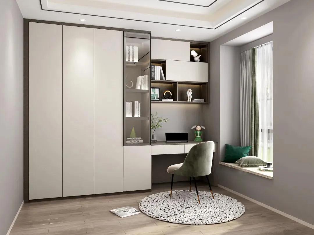 書房的使用頻率不如客餐廳等空間高,所以易清潔、防落灰是第一要?jiǎng)?wù)。超高門由于是無縫銜接,所以落灰更少,打掃起來更快捷方便。收納遵循藏八露二的原則,就算沒有時(shí)間清理,也能讓空間一直保持整潔不雜亂。