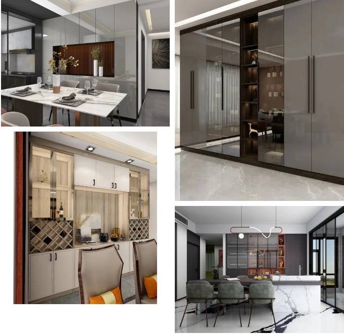 選用高級感滿滿的黑灰色系,搭配玻璃、金屬、高光門板元素的結(jié)合,讓餐邊柜凸顯輕奢格調(diào)!