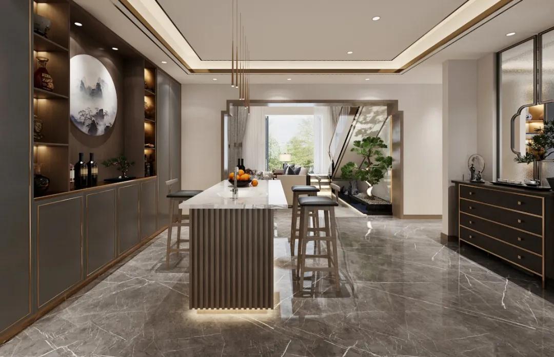 隨著消費市場的需求劇增,含蓄秀美、淡雅墨韻的新中式風(fēng)越來越成為風(fēng)靡全球的流行風(fēng)格。在保留中式核心元素,并推陳出新,通過現(xiàn)代材質(zhì),比如巖板和柔光大理石瓷磚、布藝家具、盆景、屏風(fēng)裝飾等,既保留了中式巧妙兼柔,又賦予了新的表現(xiàn)形態(tài),即大而不空,厚而不重。