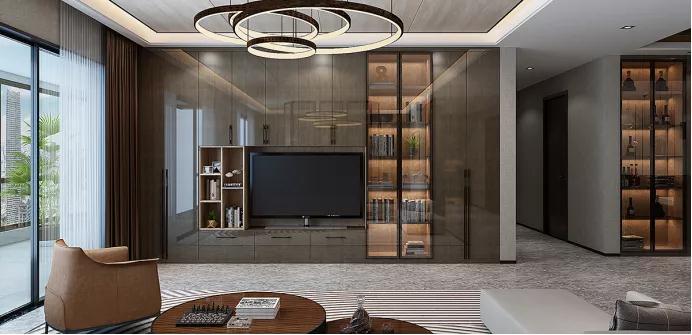 不張揚,不喧嘩,純粹的裝飾線條美帶來的純凈和簡單,從細(xì)節(jié)演繹出生活的精致度。一門到頂?shù)拈L門設(shè)計,虛實結(jié)合,讓空間多了一絲現(xiàn)代感的襯托,電視柜的收納功能更是不容置疑。