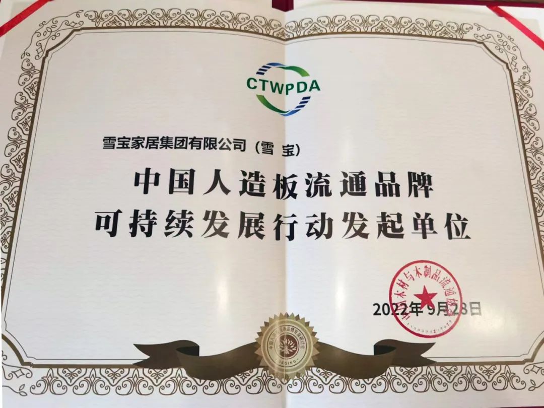現(xiàn)場(chǎng),雪寶家居集團(tuán)與其他13家行業(yè)流通品牌企業(yè)被授予“中國(guó)人造板流通品牌可持續(xù)發(fā)展行動(dòng)發(fā)起單位”稱(chēng)號(hào),共同肩負(fù)起行業(yè)綠色創(chuàng)新發(fā)展的標(biāo)桿企業(yè)責(zé)任。