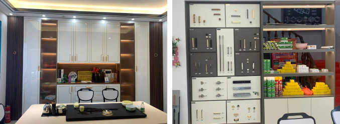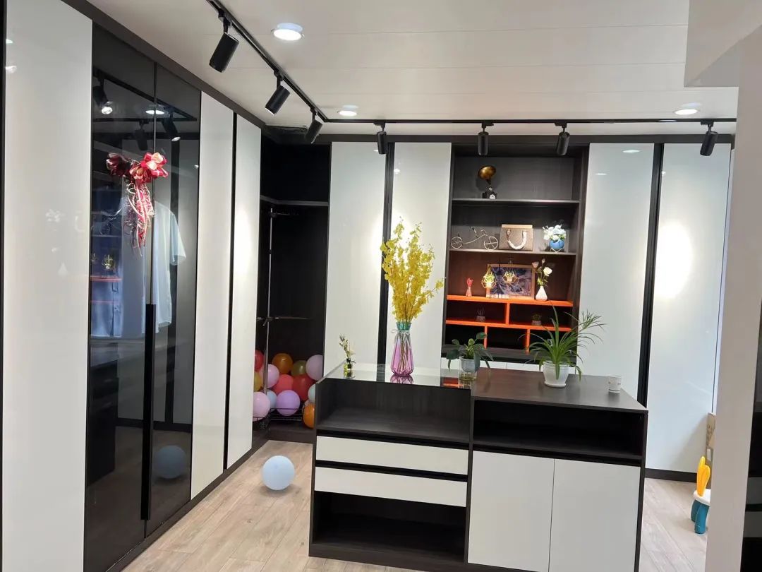 門店配備三大展廳——材料展廳、體驗(yàn)式展廳、共享展廳。材料展廳實(shí)現(xiàn)材料透明化,消費(fèi)者可以清楚看到衣柜每一部分使用什么材料,成品展示區(qū)一比一還原家居真實(shí)體驗(yàn),所見即所得,照亮理想家的模樣,共享展廳集合了木工、設(shè)計師、顧客真實(shí)裝修案例等等,讓消費(fèi)者買得安心、買得放心。