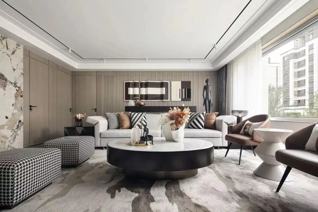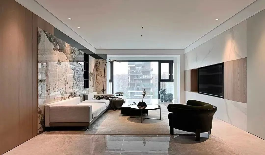 保持客廳整潔的絕佳辦法就是把一切瑣碎都收到眼睛看不到的地方。在客廳中做門墻柜一體化是非常流行的設(shè)計,可沿著過道墻、電視墻或者沙發(fā)墻定制多功能組合柜,讓單一空間具備多重功能,呈現(xiàn)大氣簡約的空間感。