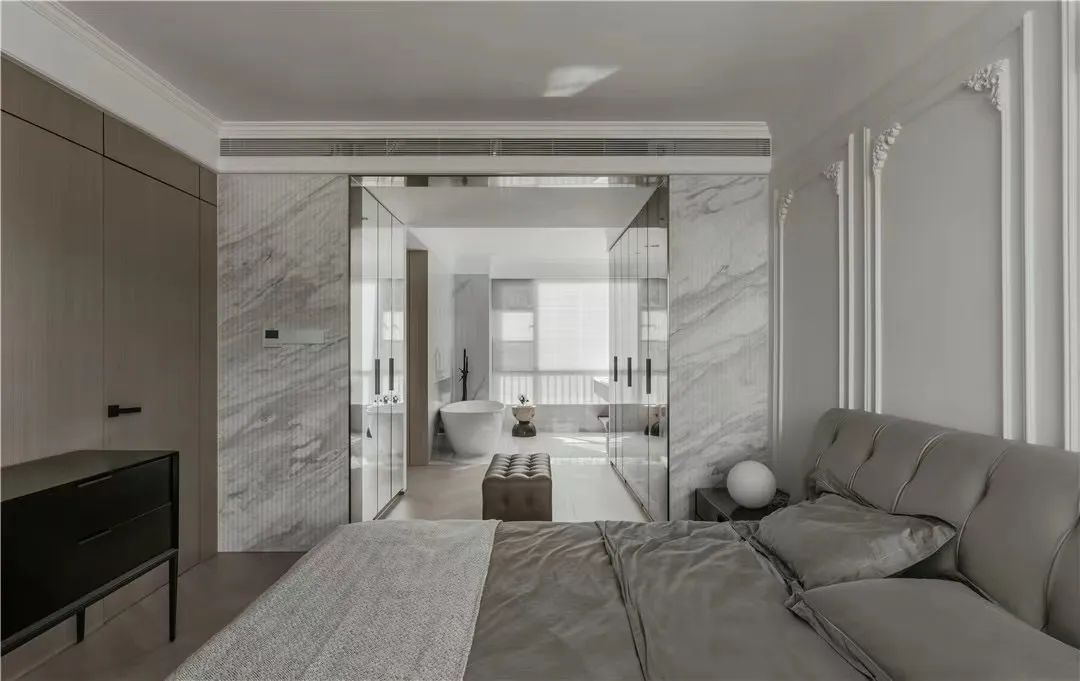 從舒適度出發(fā),一體化設(shè)計中每個細節(jié)都可以量身定制。比如衣柜、梳妝臺、門、背景墻等可以根據(jù)居住者的需求和習(xí)慣進行整體的設(shè)計。圍合出舒適優(yōu)雅的臥室空間,平衡實用與美感的雙重需求。