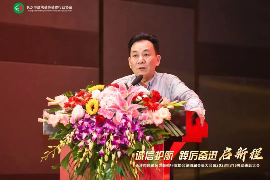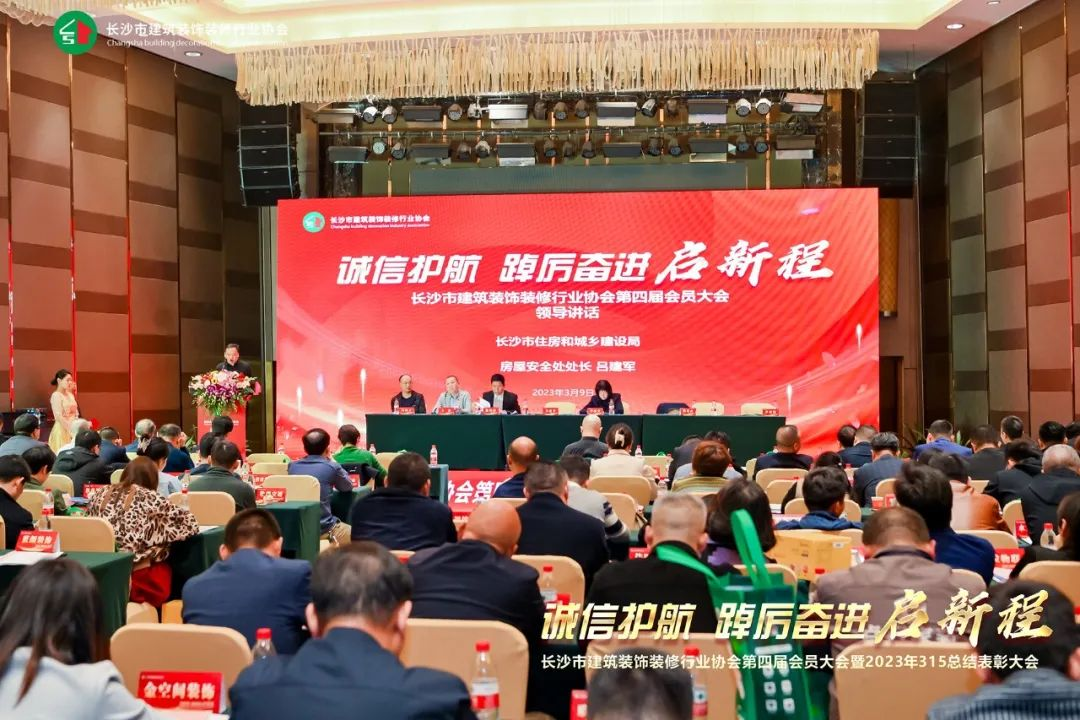 神州春潮起,奮進正當(dāng)時!2023年3月9日,“誠信護航·踔厲奮進啟新程 ”長沙市建筑裝飾裝修行業(yè)協(xié)會第四屆會員大會暨315總結(jié)表彰大會在星城長沙隆重召開。長沙市住建局、市民政局領(lǐng)導(dǎo)、長沙市建筑裝飾裝修行業(yè)協(xié)會(后文簡稱市裝協(xié))、千思、金煌、名匠、金空間、鴻揚、點石、美迪、東家樂等各大裝飾公司,以及數(shù)百余家會員單位代表共聚交流。