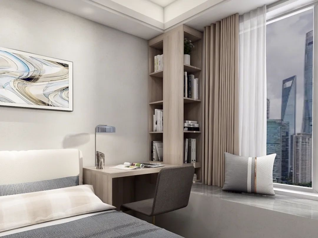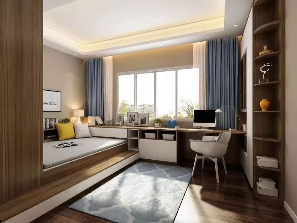 但如果空間較狹窄,則可以充分利用飄窗四周空間,設(shè)計(jì)出一款書柜與書桌相結(jié)合的一體式柜子,這下就再也不用羨慕別人家有書房了!
