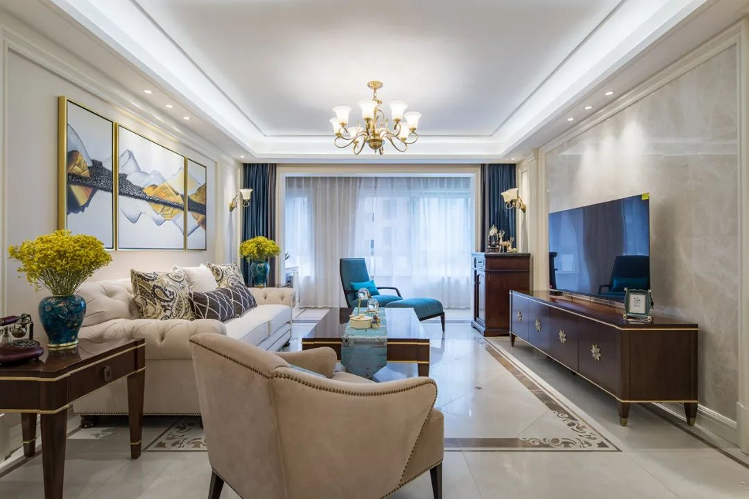 在客廳的設(shè)計上,點線面的結(jié)合流暢而利落,讓整個空間立體飽滿,無論是質(zhì)感十足的硬裝,還是配飾豐富的軟裝,以及點睛之筆的工藝品,剛與柔、深與淺、明與暗的多重對比呈現(xiàn)出交相輝映的層次變化,看似不經(jīng)意,卻又足夠浪漫無比。