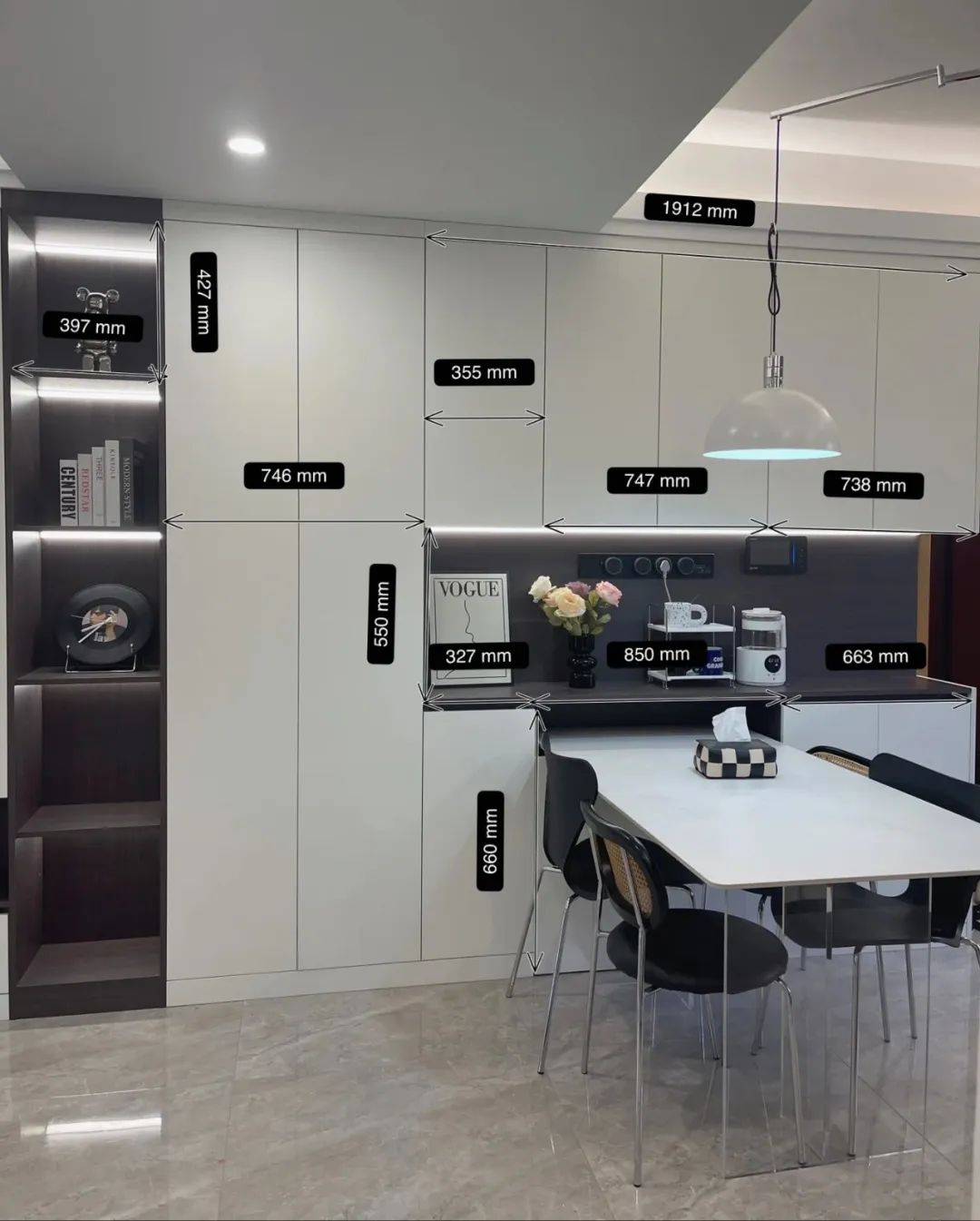 ✔ 廚房小,收納空間可以借用餐邊柜分擔廚房收納;