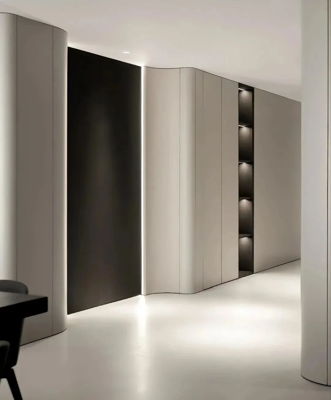 統(tǒng)一的飾面花色,形成無(wú)限的視覺(jué)延伸,無(wú)限擴(kuò)展空間的延展性,既滿足了功能需求,又豐富了空間的藝術(shù)氣質(zhì)。