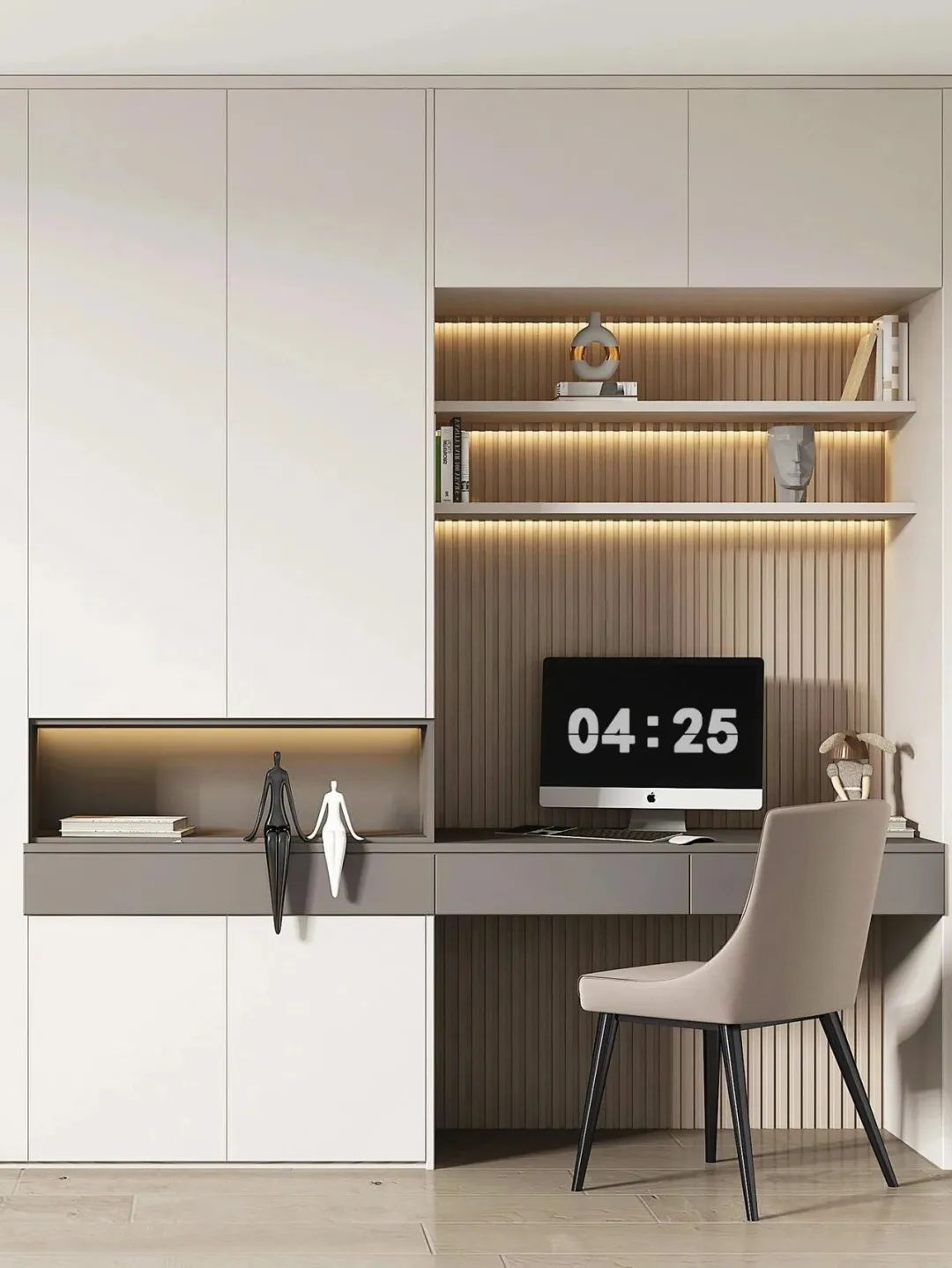 免拉手設(shè)計(jì)堪稱柜門利器,沒(méi)有拉手的柜門,立面整潔清爽。而門墻柜一體化設(shè)計(jì)則實(shí)現(xiàn)了門、墻、柜串聯(lián)為一體的布局,柜體瞬間高級(jí)起來(lái),美觀度直線提升,還能增強(qiáng)空間縱深感。