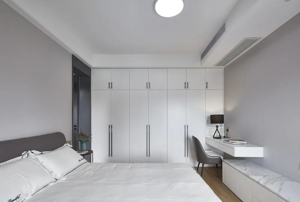 很多家庭會把衣柜擺在房門左側(cè),睡床旁邊,正對臥室窗戶。這樣擺的好處是,不會擋到窗戶,對臥室采光有利。