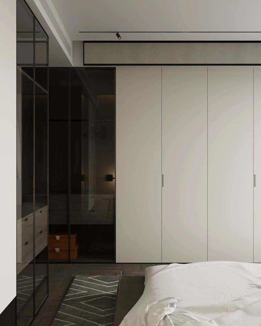 在寸土寸金的都市中,入墻式衣柜也成了不少家庭的寵兒,其不僅讓空間利用率高,而且加強(qiáng)的空間的整體感,讓臥室空間與柜體的融合更為緊密,選擇無(wú)拉手衣柜,則可以達(dá)到更高的融合,更為時(shí)尚美觀。