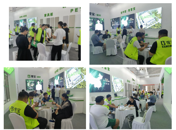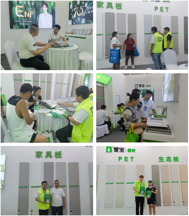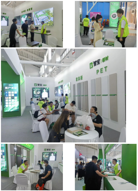 此次展會(huì),前來雪寶板材展區(qū)咨詢的客戶絡(luò)繹不絕,現(xiàn)場人聲鼎沸,熱鬧非凡。雪寶品牌華北營銷中心的精英們?cè)陉惪偟膸ьI(lǐng)下,火力全開,全體人員都展現(xiàn)出信心百倍與無懈可擊的氣勢(shì),全力以赴堅(jiān)決不錯(cuò)過每一個(gè)客戶,用專業(yè)技能服務(wù)和解決客戶疑難點(diǎn)。通過精心設(shè)計(jì),雪寶展館奪目大氣,成為會(huì)場矚目的焦點(diǎn)。雪寶生態(tài)板、家具板、配套五金、主流柜門等系列產(chǎn)品悉數(shù)亮相,同時(shí)雪寶ENF級(jí)系列產(chǎn)品也得到眾多客戶的選擇和信賴。