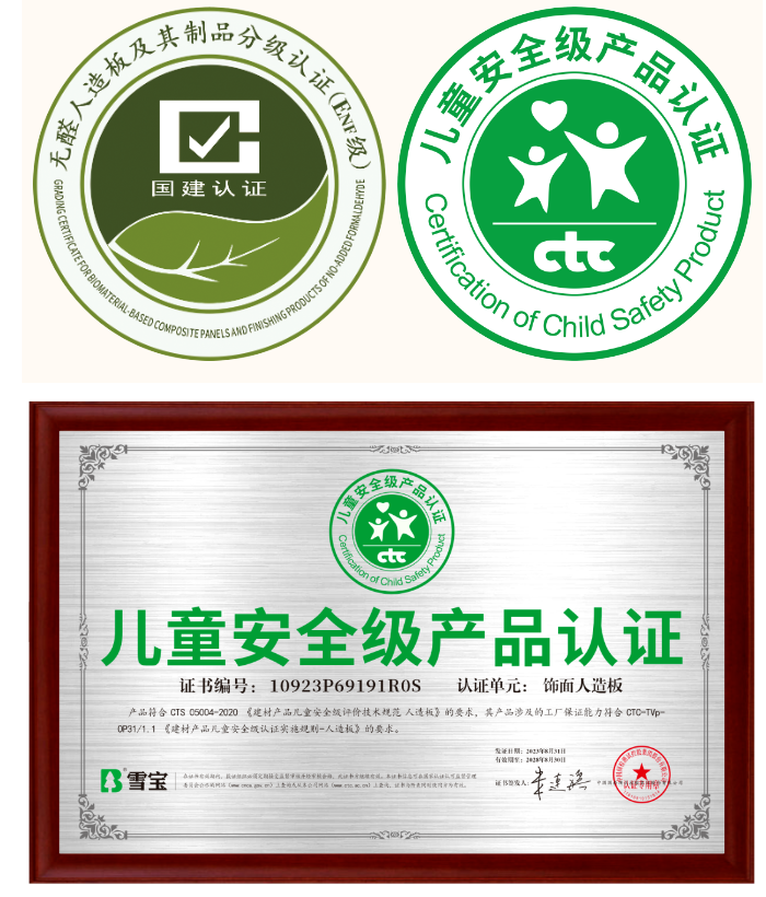 近日,繼雪寶板材獲得“無(wú)醛人造板制品分級(jí)認(rèn)證證書(shū)”后,再次喜提高含金量證書(shū)“兒童安全級(jí)產(chǎn)品認(rèn)證”證書(shū),實(shí)力踐行“兒童房健康板”高環(huán)保品質(zhì)理念,硬核守護(hù)兒童健康成長(zhǎng)家居環(huán)境。