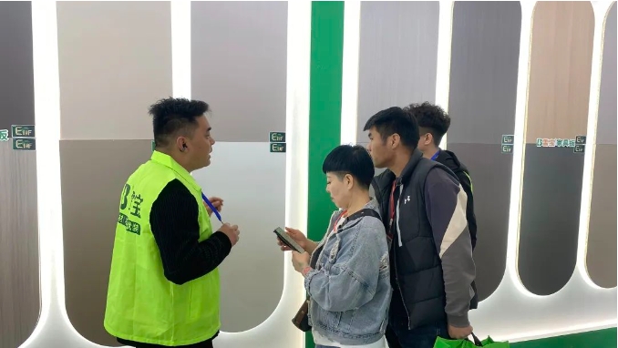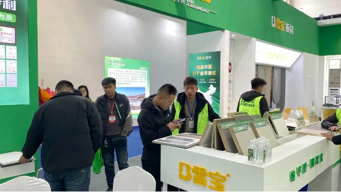 以更高效辦展模式——“展”“會(huì)”結(jié)合,助力展商和觀眾交流資源,共話商機(jī)。雪寶展位開(kāi)展三天以來(lái)現(xiàn)場(chǎng)人氣火爆,雪寶A館-B特3展位用醒目大氣的高顏值、卓越領(lǐng)先的產(chǎn)品力、配套齊全的服務(wù)力吸引廣大賓客朋友走進(jìn)雪寶展位。同時(shí),我們極具競(jìng)爭(zhēng)力的新產(chǎn)品、全新的品牌VI以及新IP形象,吸引著大量顧客的眼光,深入了解板材生產(chǎn)工藝以及展館內(nèi)陳列的優(yōu)質(zhì)產(chǎn)品,前來(lái)展館體驗(yàn)產(chǎn)品和洽談合作事宜的顧客絡(luò)繹不絕。