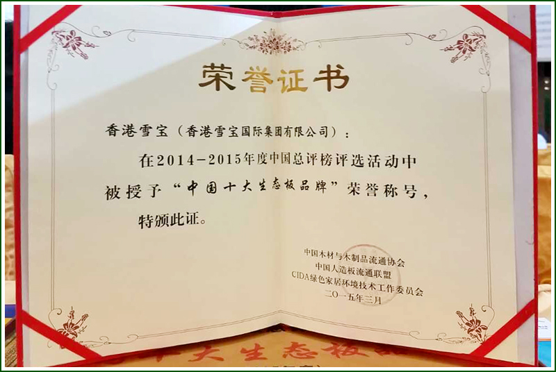雪寶榮獲中國人造板總評榜:2014年度十大生態(tài)板品牌