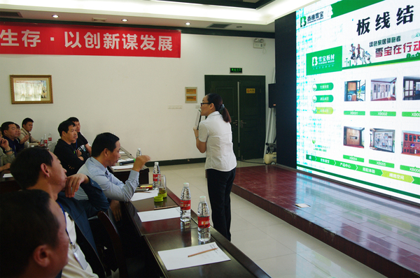 雪寶品牌在板材行業(yè)的穩(wěn)步發(fā)展,離不開緊跟市場(chǎng)步伐和對(duì)產(chǎn)品品質(zhì)及創(chuàng)新的執(zhí)著追求。雪寶華北營銷總監(jiān)凌總就本次“三新”發(fā)布會(huì)致辭,凌總在發(fā)布會(huì)中對(duì)品牌未來的發(fā)展規(guī)劃做了全面的闡述,并對(duì)西北地區(qū)的發(fā)展和營銷政策進(jìn)行了詳細(xì)的講解,同時(shí)對(duì)劉總舉辦的這次會(huì)議給予了極高的肯定和贊譽(yù)。
