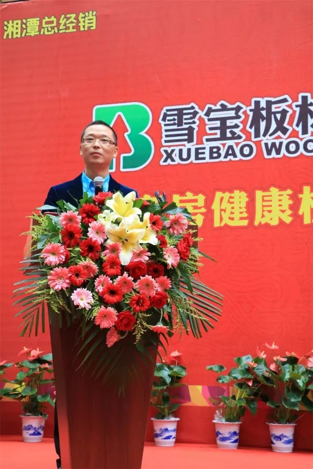 ▲雪寶板材國(guó)內(nèi)營(yíng)銷(xiāo)中心總經(jīng)理李振先生為開(kāi)業(yè)典禮致辭