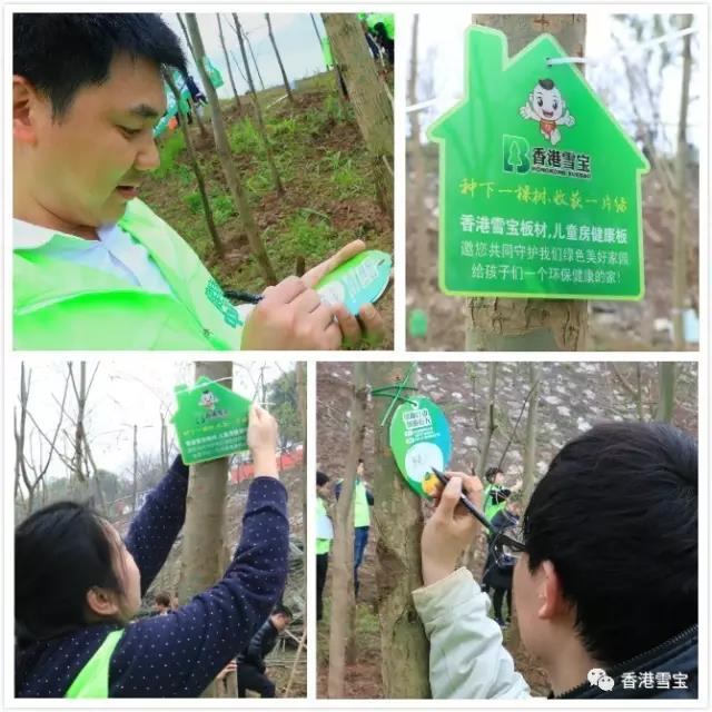 ▲雪寶家人為樹苗掛上統(tǒng)一的標(biāo)識牌并寫下美好心愿