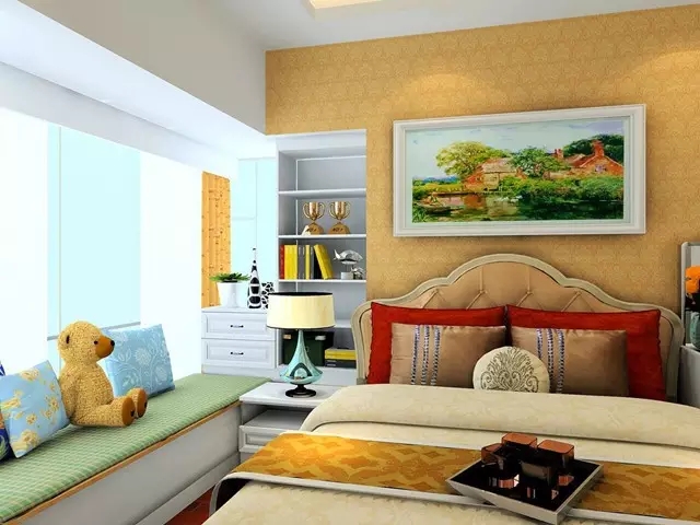②將收納延伸到墻面空間,嵌入式隔板兼顧收納與裝飾,可以收納更多睡讀物,也可擺放藝術(shù)品。