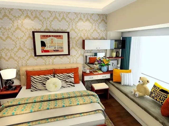 ①擺下一張床之后發(fā)現(xiàn)床尾處還剩20cm空間,塞不下任何成品家具,而這個(gè)部位最容易堆積被子散落的灰塵,所以這塊空白處用不用,怎么用很關(guān)鍵。