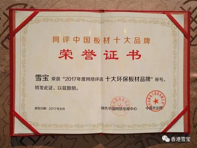 捷報(bào)頻傳!香港雪寶榮膺“十大環(huán)保板材品牌”!