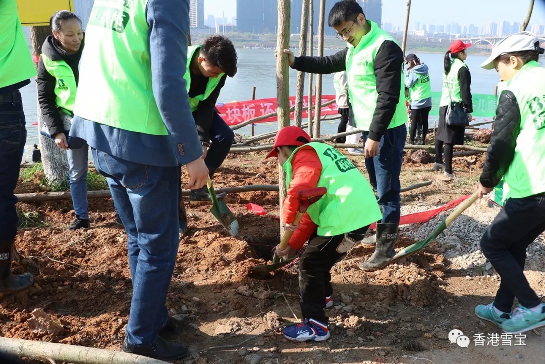 ▲綠蔭行動,全家出動,雪寶家人帶著孩子們共同參與其中,以身作則樹榜樣。小小朋友,雖然身板小,但是力氣大,植樹也是有模有樣。