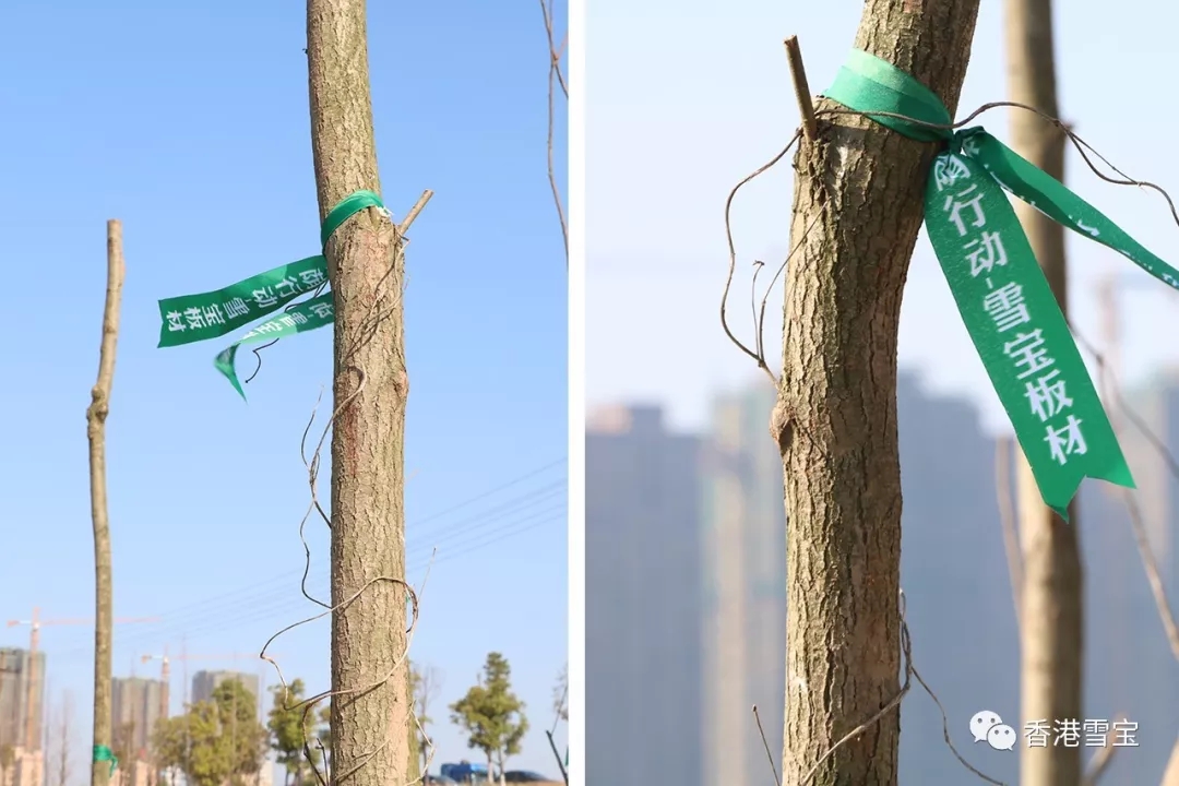 ▲雪寶綠絲帶迎風飄揚,愿每一棵樹種都茁壯成長,為我們生活的環(huán)境增添一抹綠,為我們生活的地球貢獻一片林!